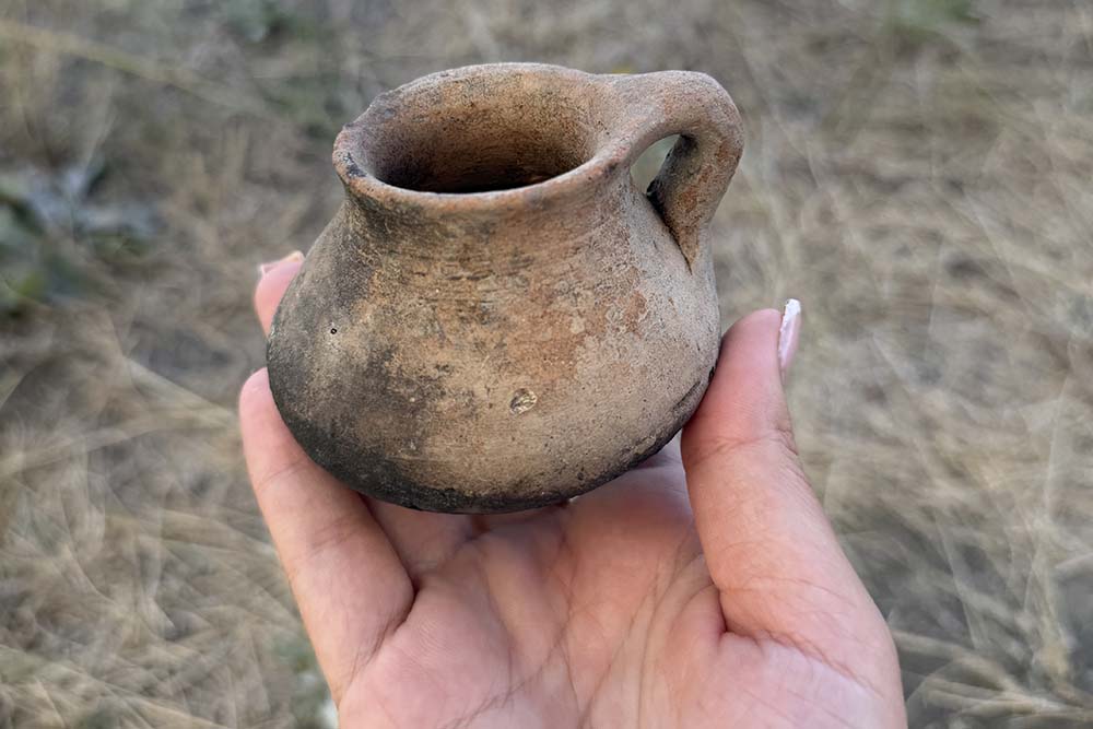 ؘ– В этом году наши студенты приехали сюда 28 июля, и именно здесь, в поле, отпразднуют 15 августа День археолога. Древнейшие следы жизни людей на этом месте, по имеющимся сведениям, относятся к концу эпохи бронзы – началу раннего железного века (рубеж II – I тыс. до н.э.). В античную эпоху поселение переживает свой расцвет и превращается в небольшой город, жители которого, по-видимому, занимались сельским хозяйством и посреднической торговлей с окружающим варварским населением. Статус этого поселения и его название ещё окончательно не выяснены, однако исследователями выявлены элементы, которые можно трактовать, как части городской застройки: фрагменты фортификационных сооружений, многочисленные участки стен домов VI–IV вв. до н.э., хозяйственные ямы, колодцы, склады амфор, – рассказала Елена Александровна.