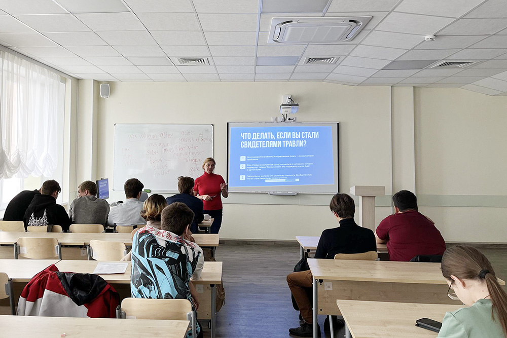 Лилия Анисимова рассказала обучающимся, как распознать признаки буллинга и как правильно реагировать на агрессию. Среди рекомендаций – обращение за поддержкой к взрослым (родителям, педагогам); сохранение доказательств (скриншоты, записи разговоров); работа над самооценкой и уверенностью в себе; участие в группах поддержки и тренингах.