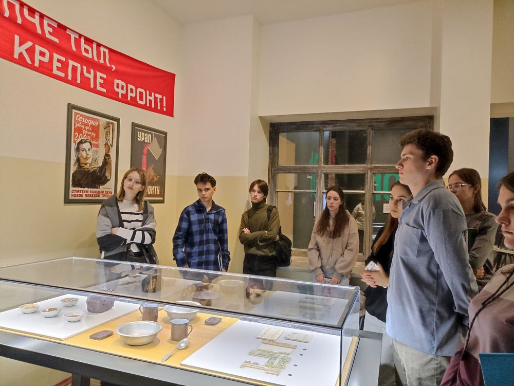 Последний музей комплекса, который удалось посетить ребятам, – «Битва за оружие Великой Победы». Музей покорил своим антуражем. Реконструкция магазинов, поезда, заводских помещений перенесла слушателей в военную эпоху. Студенты узнали о вкладе обычных людей – тружеников тыла: женщин и стариков во время войны.