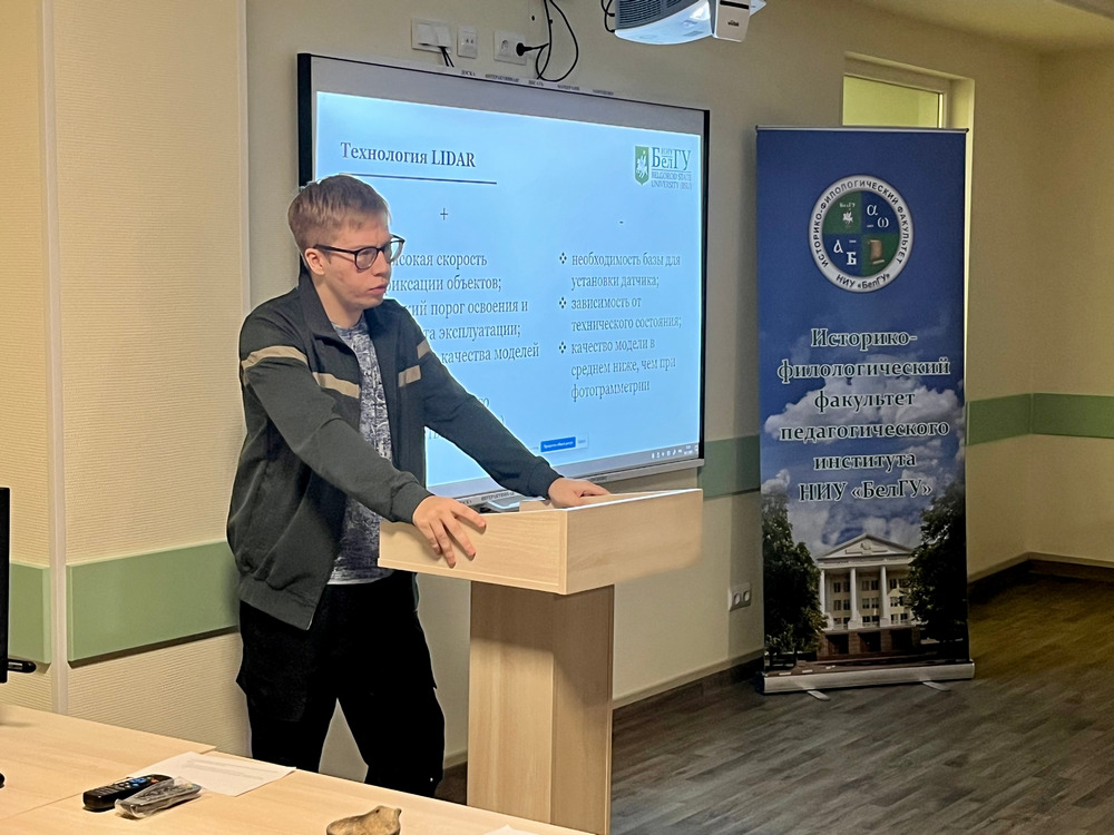 О процессе подготовки проектной работы рассказал студент 4 курса факультета иностранных языков Александр Лайко. Команда НИУ «БелГУ» представила проект на тему «Опыт применения технологии LIDAR (приложение Scaniverse) для создания 3D моделей археологических объектов и их дальнейшей обработки». Знакомство с теоретической базой перешло в мастер-класс по созданию 3D моделей с использованием датчика LIDAR, встроенного в камеру смартфона на базе приложения Scaniverse.