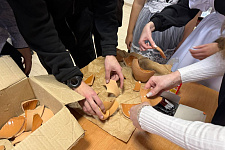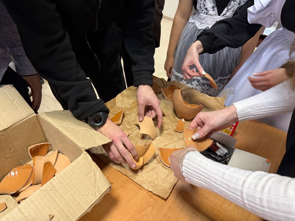 Программа продолжилась яркими выступлениями студентов. Софья Тихомирова, представляющая студенческий совет, рассказала о всех возможностях для внеучебной жизни: комитетах, клубах по интересам, творческих коллективах, где будущие студенты точно найдут себе дело по душе. Затем старший наставник Археологического штаба Кирилл Шлыков погрузил аудиторию в мир археологии, продемонстрировав настоящие фрагменты древней керамики и поделившись личным опытом археологических исследований. А кульминацией стал мастер-класс, где школьники смогли сами попробовать собрать из фрагментов целый сосуд. Это задание вызвало особенный азарт и интерес.