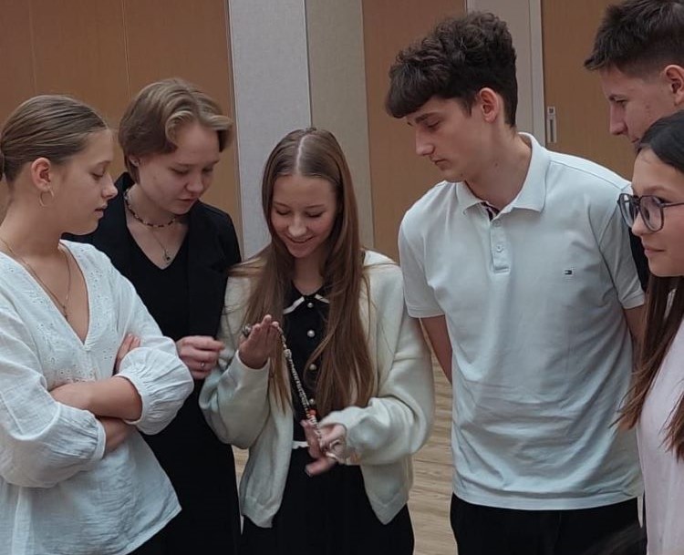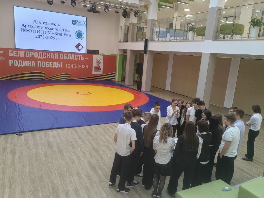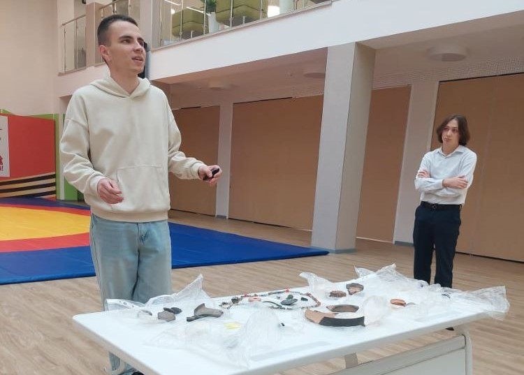 Евгений Шебанов и Сергей Коваль познакомили учащихся с археологией как научной дисциплиной и деятельностью студенческого объединения «Археологический штаб». Они поделились своими впечатлениями о полевых исследованиях и рассказали о значении археологических находок для изучения истории.