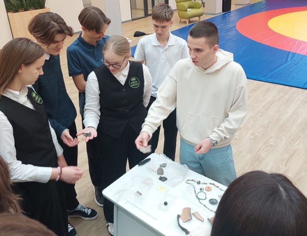 Кроме того, школьникам была представлена передвижная мини-выставка «Белгородчина: от эпохи камня до Белгородской черты», которая продемонстрировала подлинные археологические находки, как массовые (фрагменты керамики), так и индивидуальные (изделия из металла, бусы). Экспонаты вызвали живой интерес у ребят, они активно задавали вопросы об обстоятельствах обнаружения этих находок и их назначении.