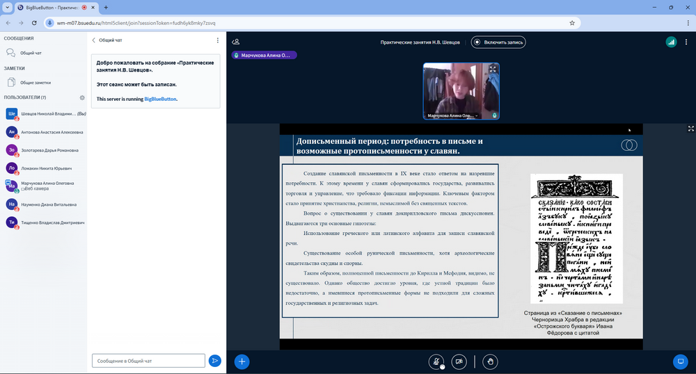 Студенты коснулись важных тем древнерусской истории: создание кириллицы, крещение Руси, Куликовская битва, падение ордынского ига и история Псковской республики. В ходе защиты работ учащиеся продемонстрировали достойный уровень владения навыками и усвоения информации.