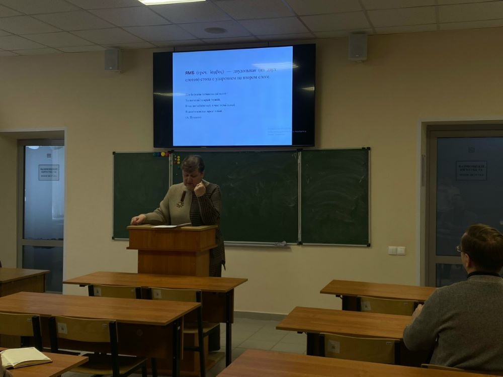 Важной частью занятия была работа с двусложными размерами – ямбом и хореем. После овладения теорией участники перешли к практике: учились определять размер на конкретных примерах из русской поэтической классики, анализировали, как выбор размера влияет на интонацию и общее звучание произведения. Отдельное внимание уделили составлению собственных четверостиший с использованием двусложных размеров.