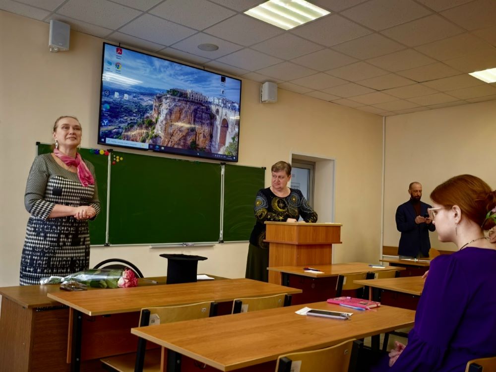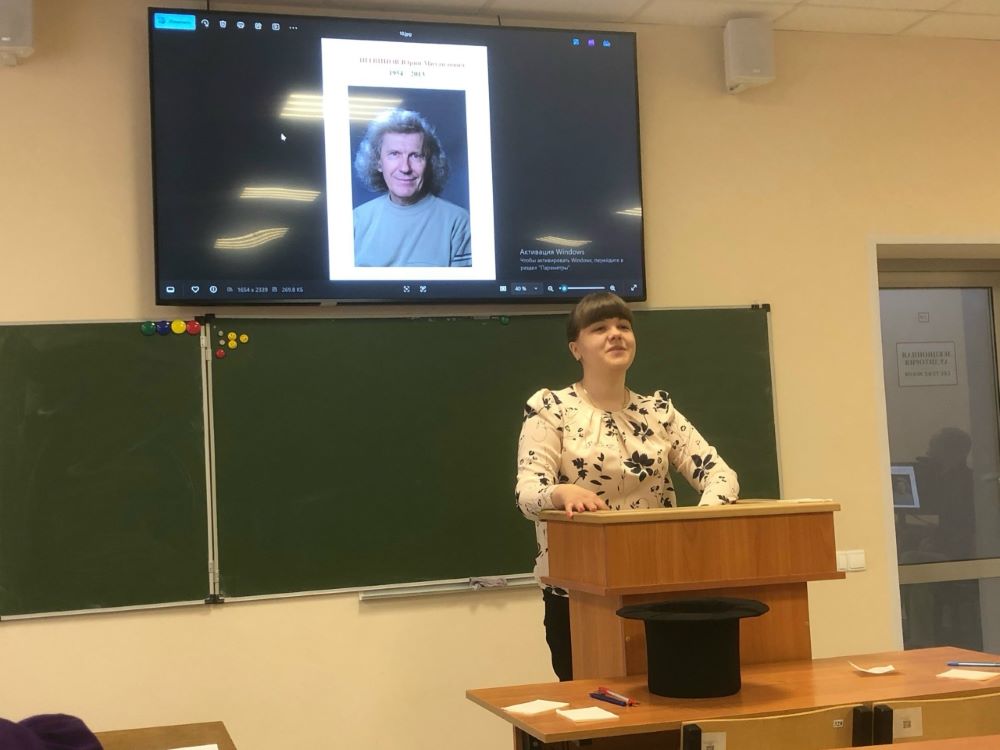 На встрече присутствовали и преподаватели кафедры: заведующая К. К. Ли, профессор В. В. Липич, доценты М. В. Половнева, Е. А. Ширина, Г. И. Пашкова, Е. М. Якимова, Д. А. Черемохина, Г. Ю. Мальцева, П. А. Чересюк, В. С. Морщинский, ст. преподаватель М. М. Голикова.